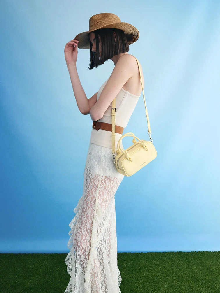 Butter yellow is set to be the colour of the season, and this Sammie elongated bag deserves a coveted spot in your wardrobe. Its simple, minimalist design allows the vibrant colour to be the main focal point, while the knotted top handles add a playful touch to the overall look.
