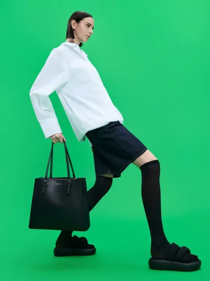 Versatile yet stylish, the Sansa tote bag is the perfect everyday bag. The classic rectangular silhouette is timeless and polished, especially in inky noir. With its minimalist, unembellished exterior, you can count on this ultra-sleek bag to go with almost anything while holding everything that you need in a day.