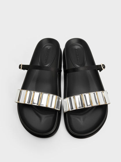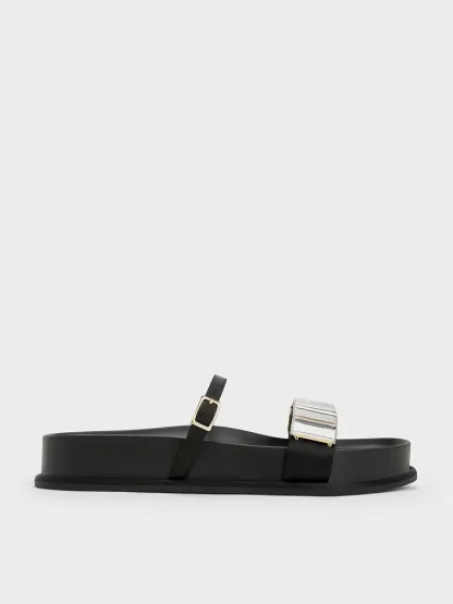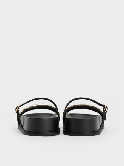Look glamorous and feel comfortable in these double-strap sandals. The casual open-toe style is given a bolder look with crystal embellishments on its straps. Versatile in black, they will instantly spruce up any outfit that you pair them with.