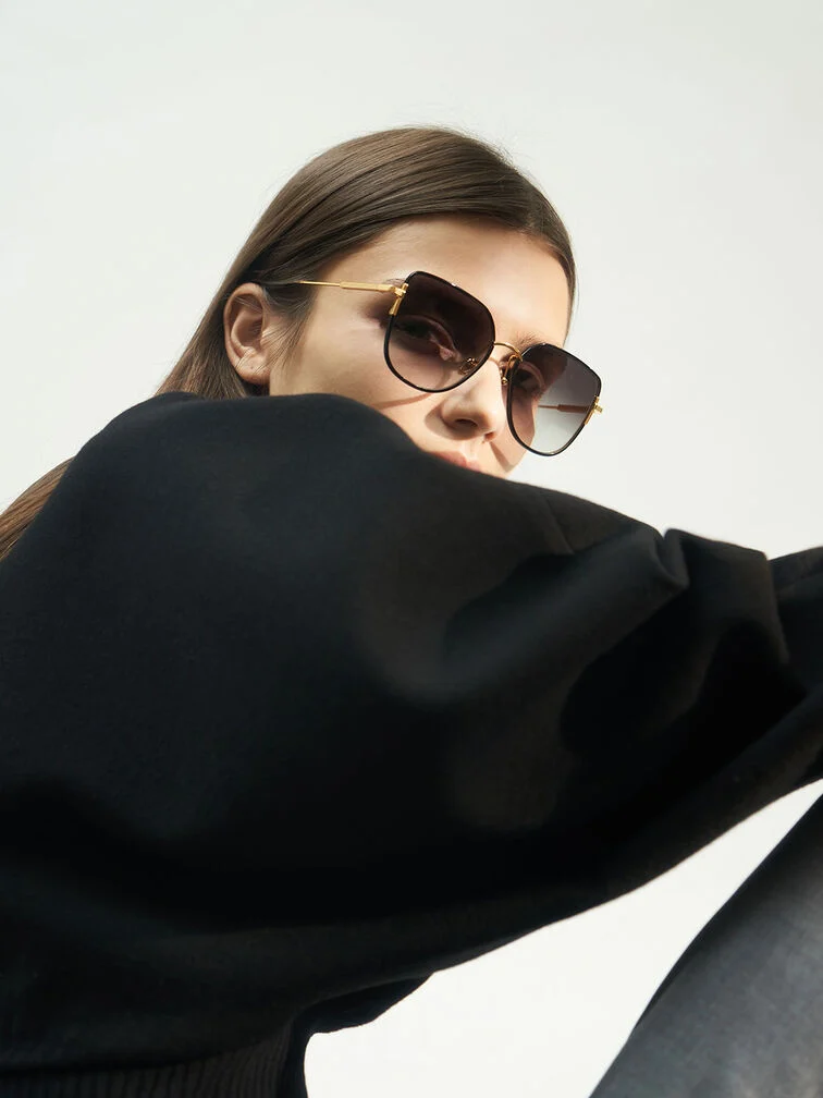 A classic piece through and through, it is hard to go wrong with a pair of timeless shades like these. Fashioned in an acetate frame and fitted with dark tinted lenses, these butterfly sunglasses will offer you some much needed protection from the sun's glare while still making sure that your outfit looks top-notch. For an effortlessly chic look, style them with bell-bottom jeans, a crop top and mules.