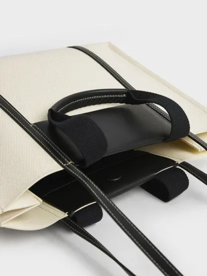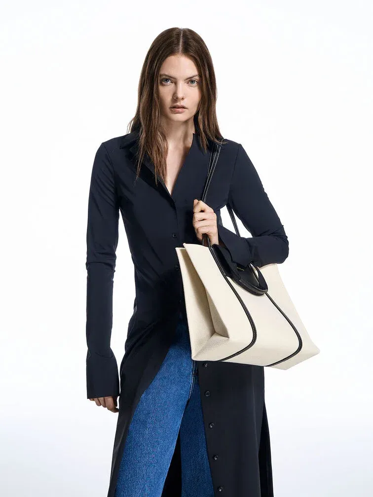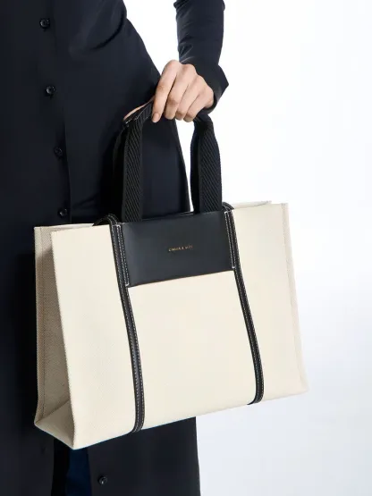 A bag to beat all other bags when it comes to structure, style or functionality. Featuring a boxy finish, double top handles, and a roomy interior, our boxy canvas Shalia tote is perfectly sized to carry all of your essentials in style. Relish being hands-free when you wear it on your shoulder and head to work. Complete with a zip closure that ensures your daily necessities stay safe, we think it will go well with a pinstripe pantsuit and textured mules.