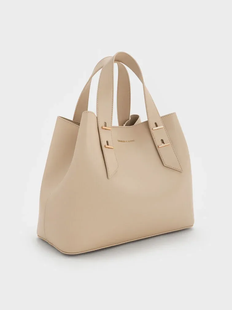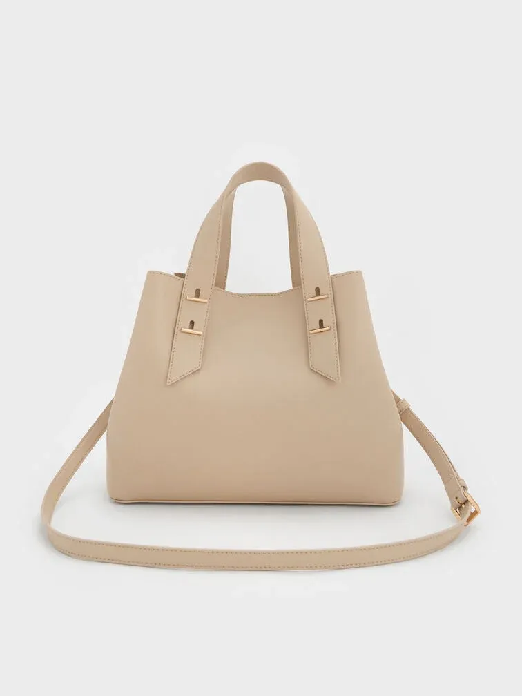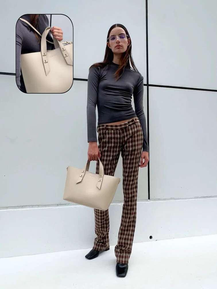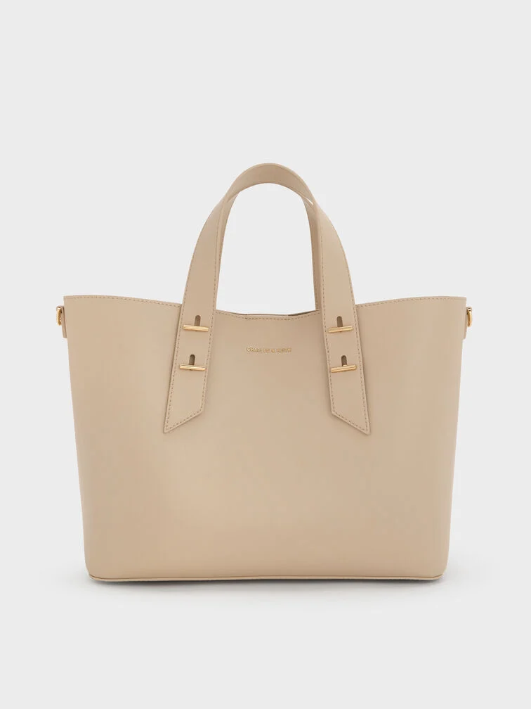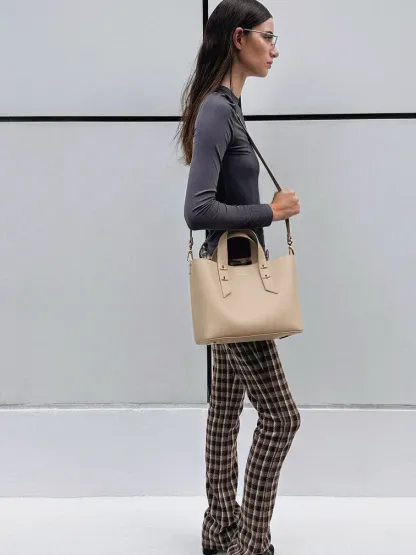 This Shania tote bag in oat features a softly structured silhouette, double handles and a spacious interior. It also comes with a detachable shoulder strap for hands-free convenience. The light neutral finish will match with everything in your wardrobe.