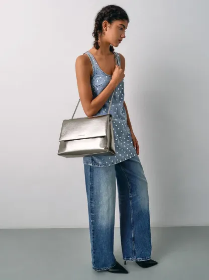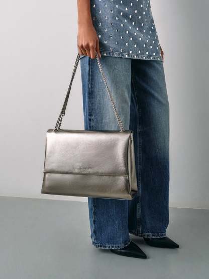 Pewter is one of the rare finishes that functions as both a neutral and a pop of glamour. Incorporate this metallic into your wardrobe with our Sianna shoulder bag, featuring a slouchy design and a roomy interior -- easily accommodating everything you need for the day and more. Finished with a matching chain strap, this bag exudes elegance and versatility, seamlessly transitioning from the year-end party season to everyday use and beyond.