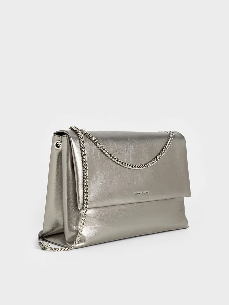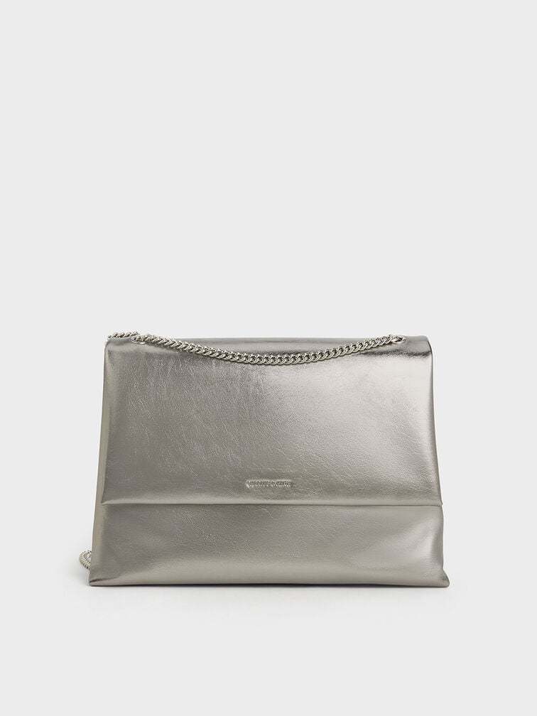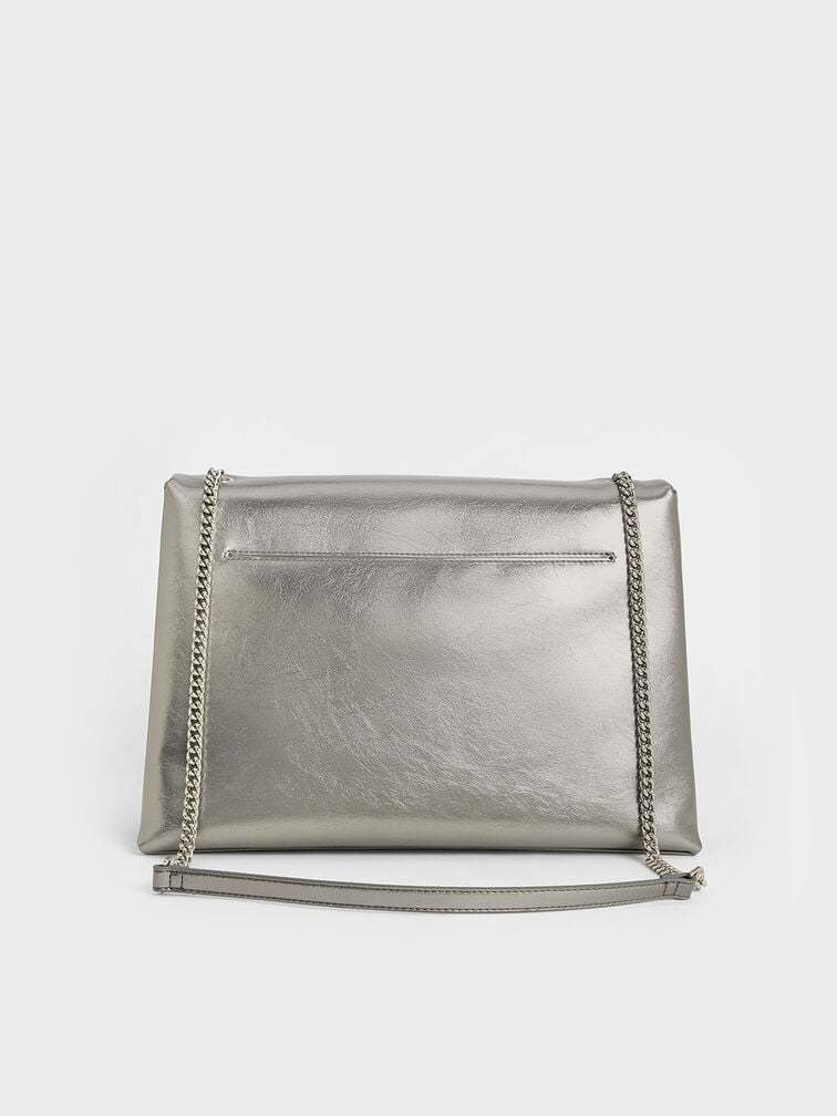 Sianna Metallic Crinkle-Effect Chain-Handle Shoulder Bag - pewter