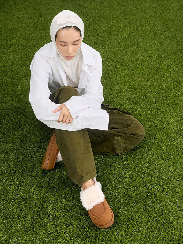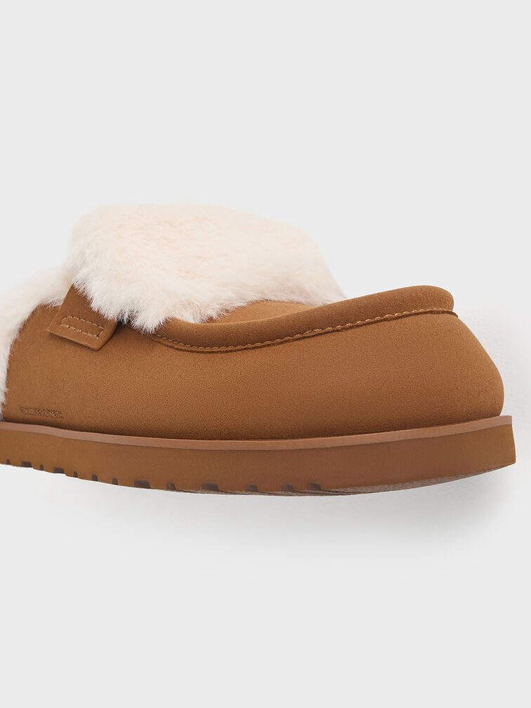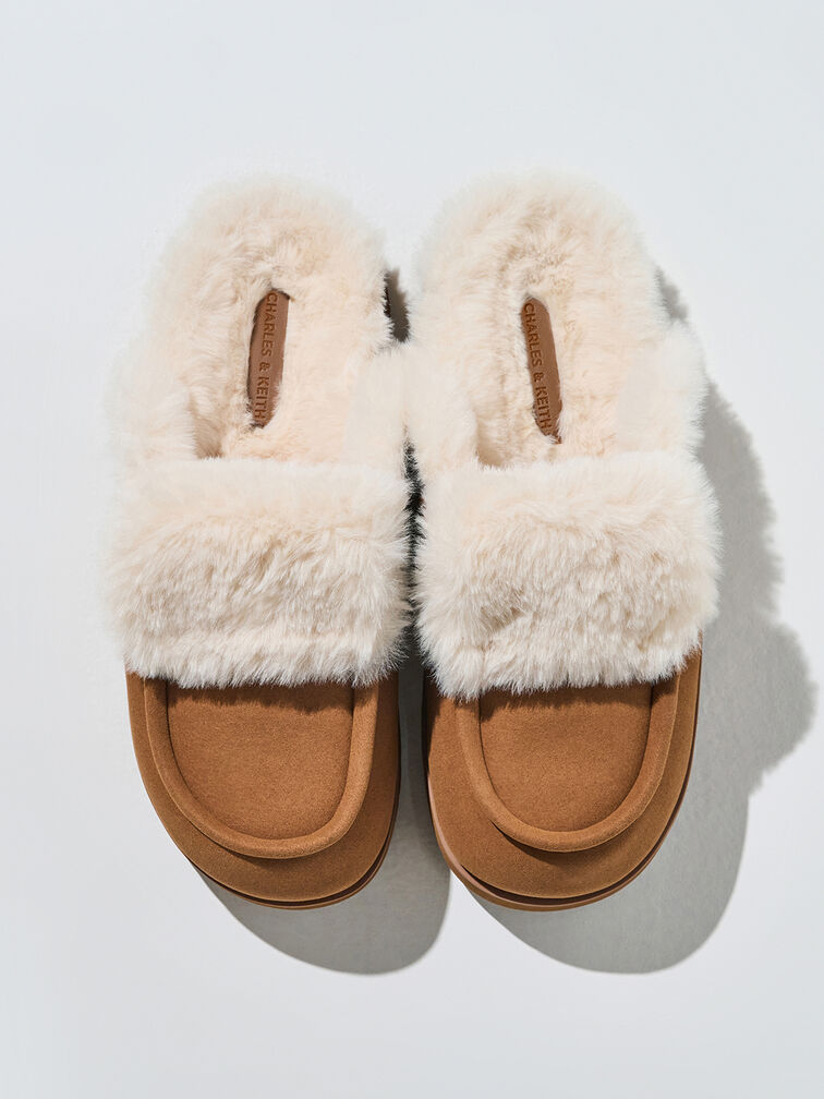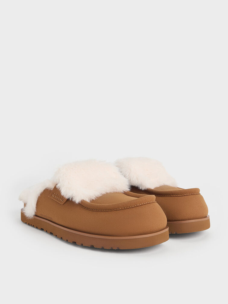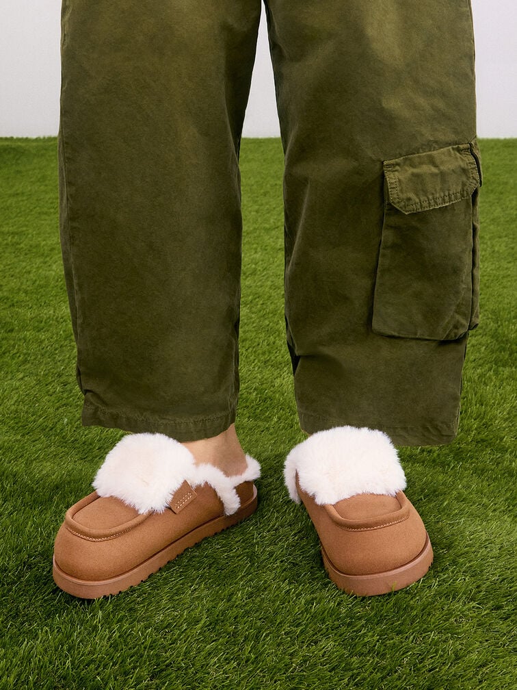 With fur-trim linings, stepping into these flatform mules will feel like walking on clouds, pampering your feet with every step. The suede-like exterior adds a luxe, textural touch to the classic brown finish, which will perfectly complement any look. Featuring a chunky design, these mules offer a height boost without sacrificing comfort. Their backless design ensures easy wear, allowing you to look effortlessly put together even on the busiest winter days.