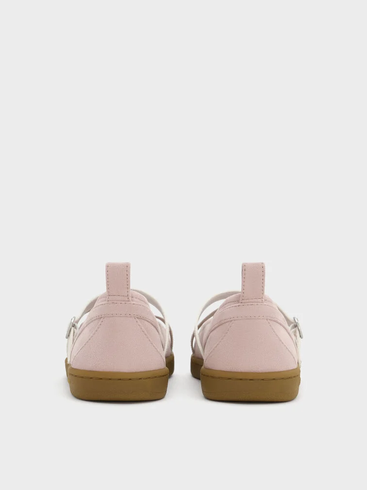 These Tiggy ballet sneakers in mauve are made with faux suede and feature rounded toes, comfortable flat soles and crossover straps in contrasting white. Let them ground weekend outfits with their cool and playful athleisure-inspired design.