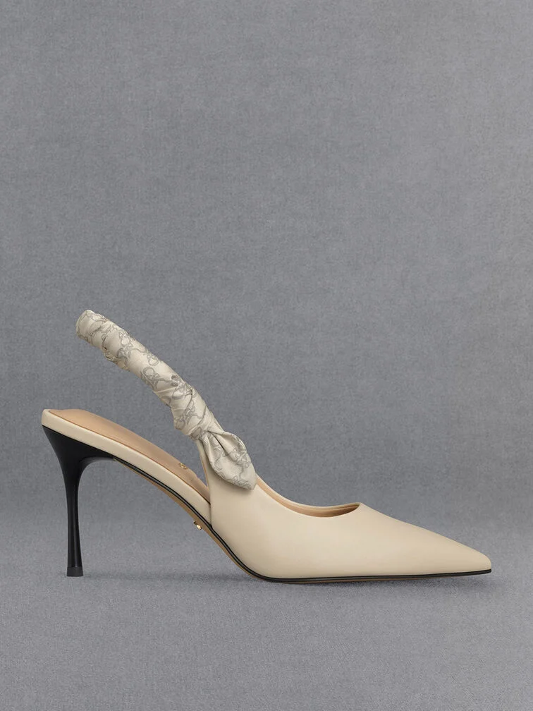 Tully Leather Ruched Print Slingback Pumps - chalk