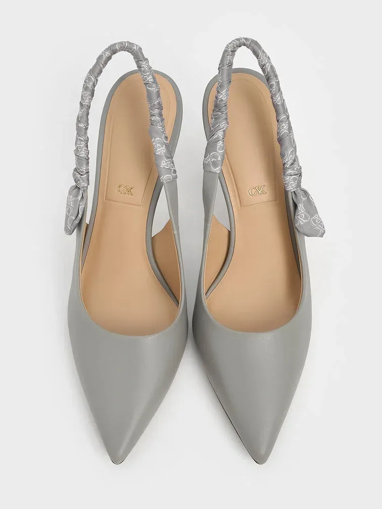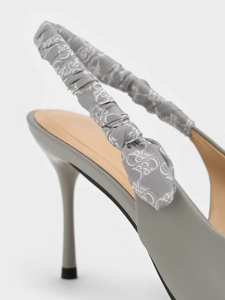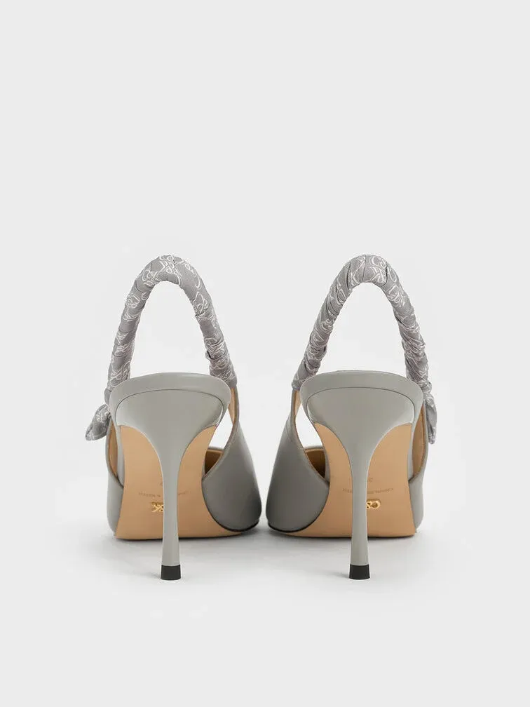 Tully Leather Ruched Print Slingback Pumps - grey