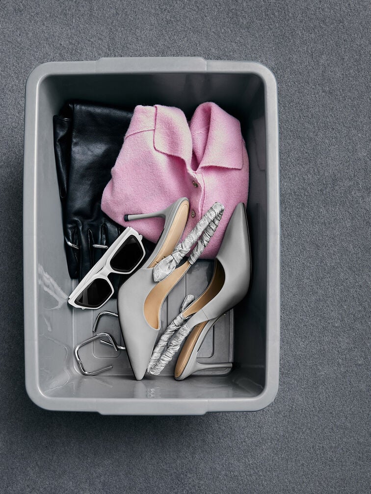 If you are looking for a pair of work-appropriate shoes that is elegant and understated at once, these Tully pumps in cool-tone grey may be it. They feature an elongated, pointed-toe design that creates a leg-lengthening and polished silhouette, while the eye-catching ruched slingback straps add a distinctive detail that sets them apart from your usual pair. Set on stiletto heels, they promise a height boost that will work well with most work outfits, from pantsuits to dresses.