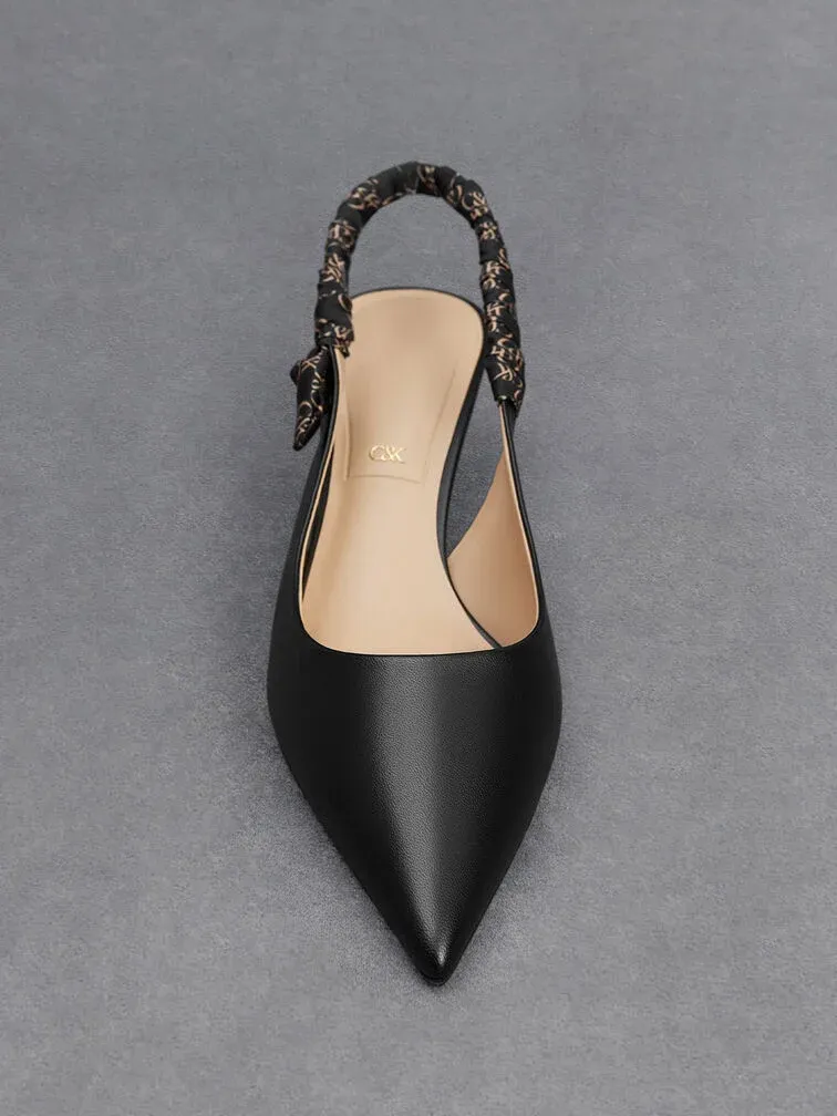 Tully Leather Ruched-Strap Slingback Pumps - black