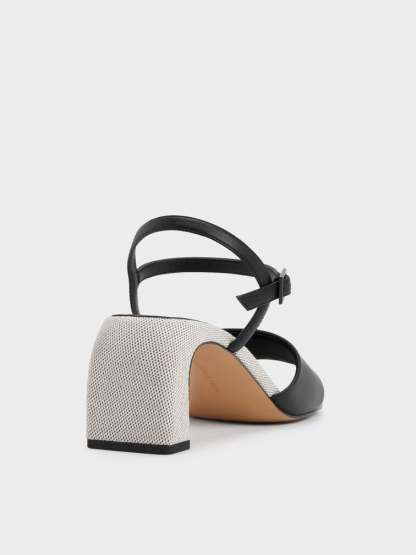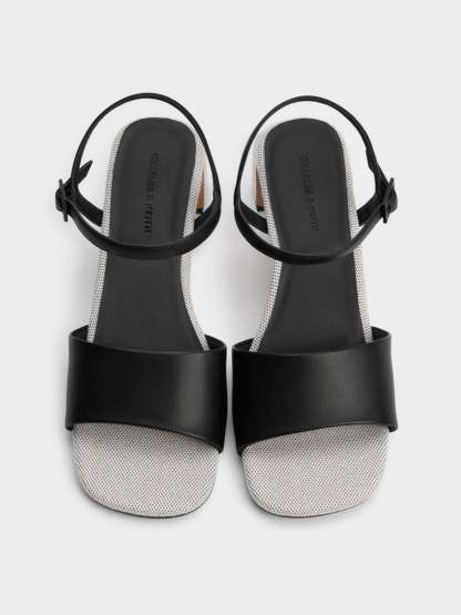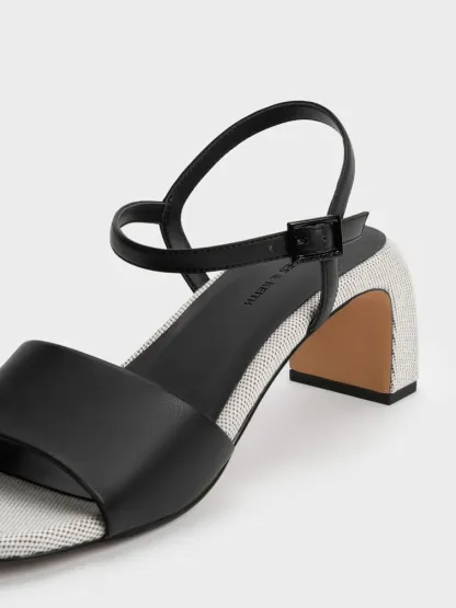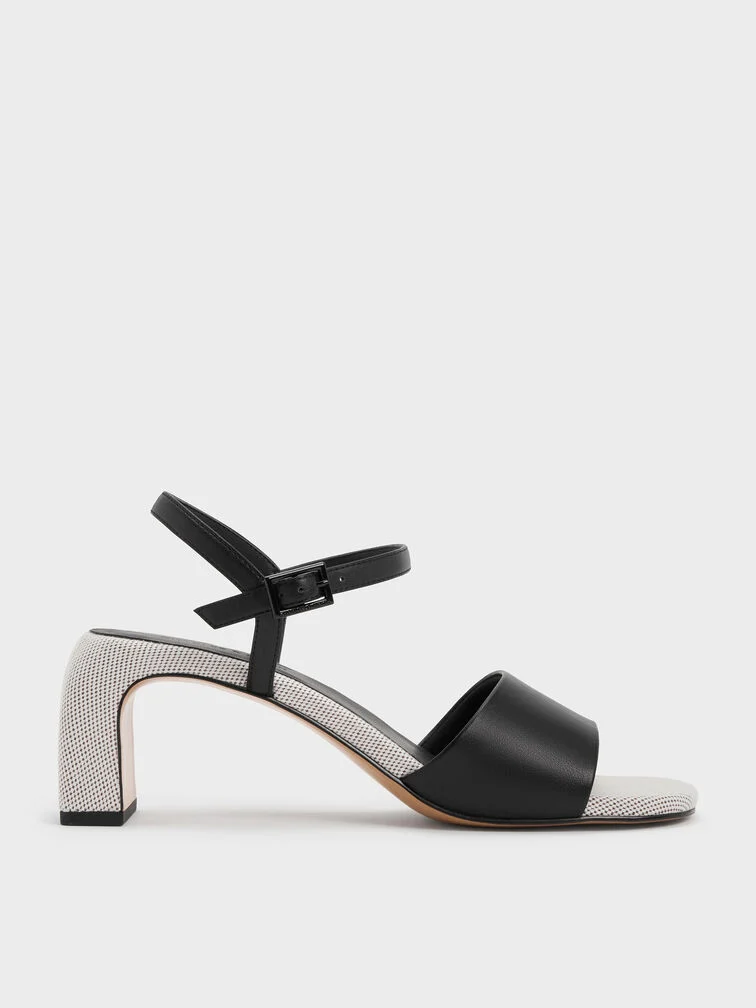 These sandals in black feature a two-tone design, thin ankle straps, open square toes, and chunky blade heels. Pair them with your favourite jeans to create an effortlessly stylish off-duty look.