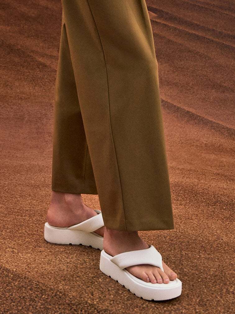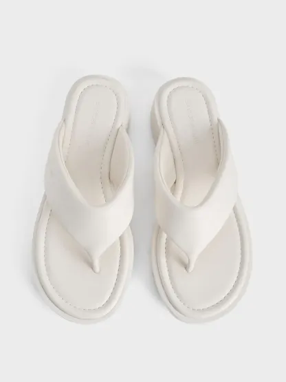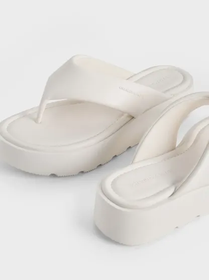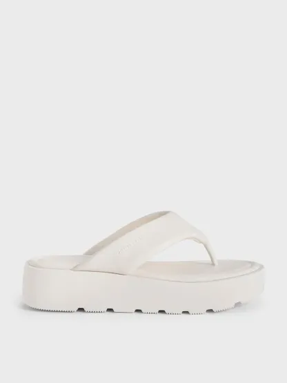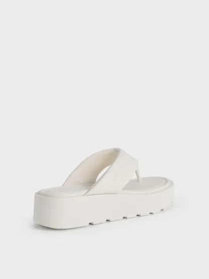 V-Strap Flatform Thong Sandals - white