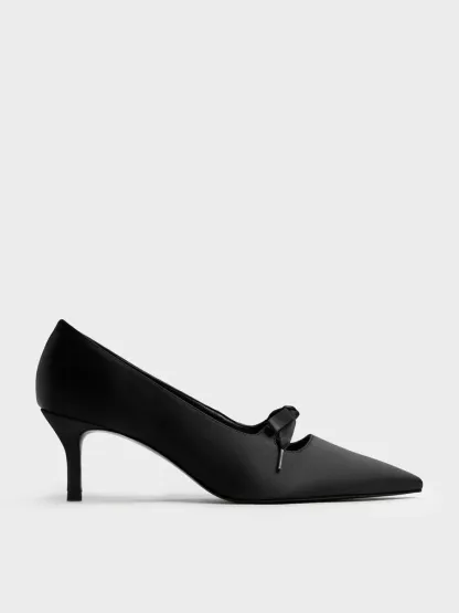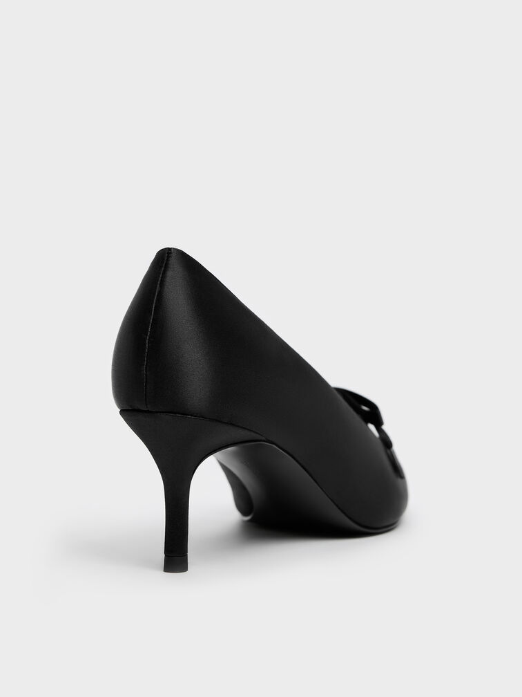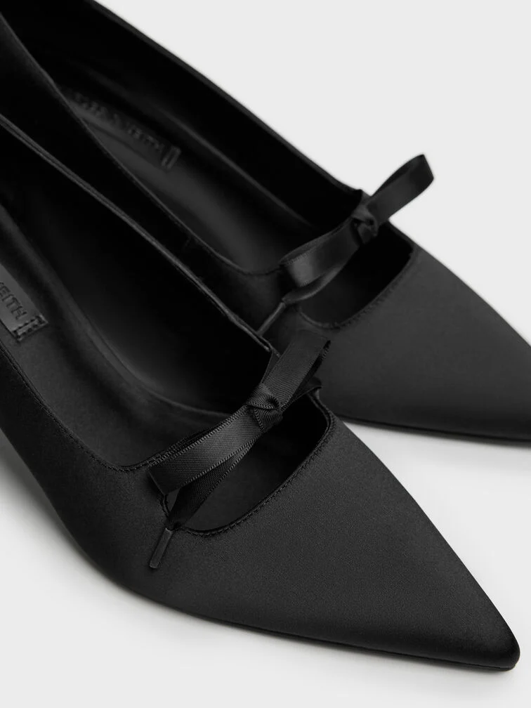 Venetia Satin Bow Pointed Pumps - black textured