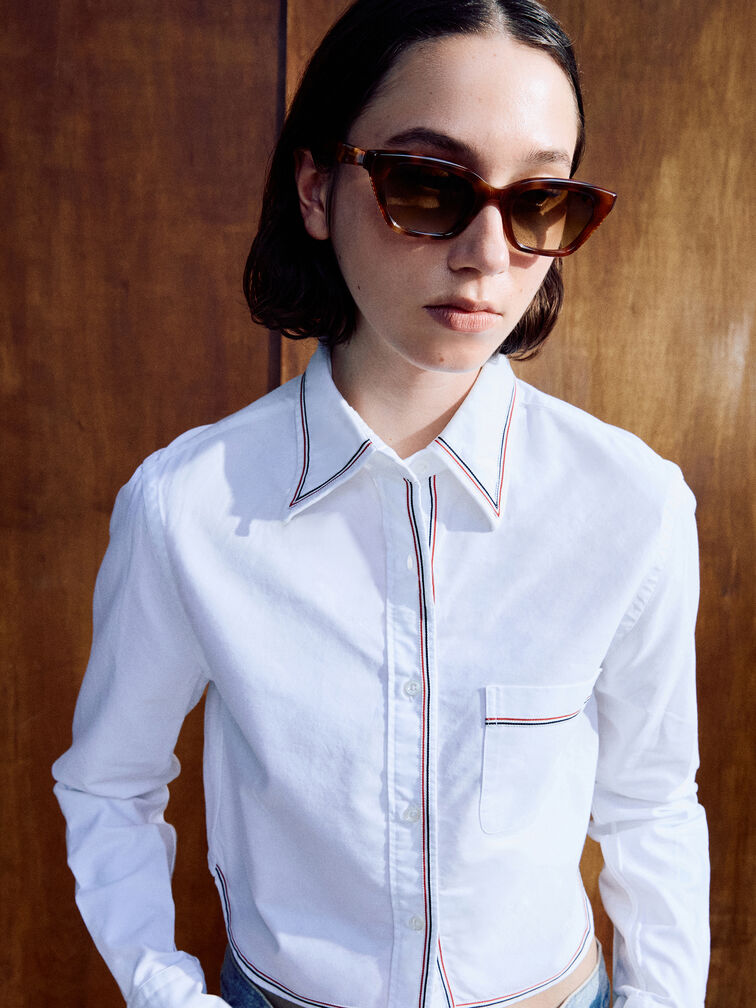 When it comes to sunglasses, tortoiseshell will always be a great choice -- this Vesta pair is a fabulous case in point. Featuring an angular cat-eye frame, these classic tortoiseshell sunnies have a uplifting effect that will make your face appear sharp and contoured.