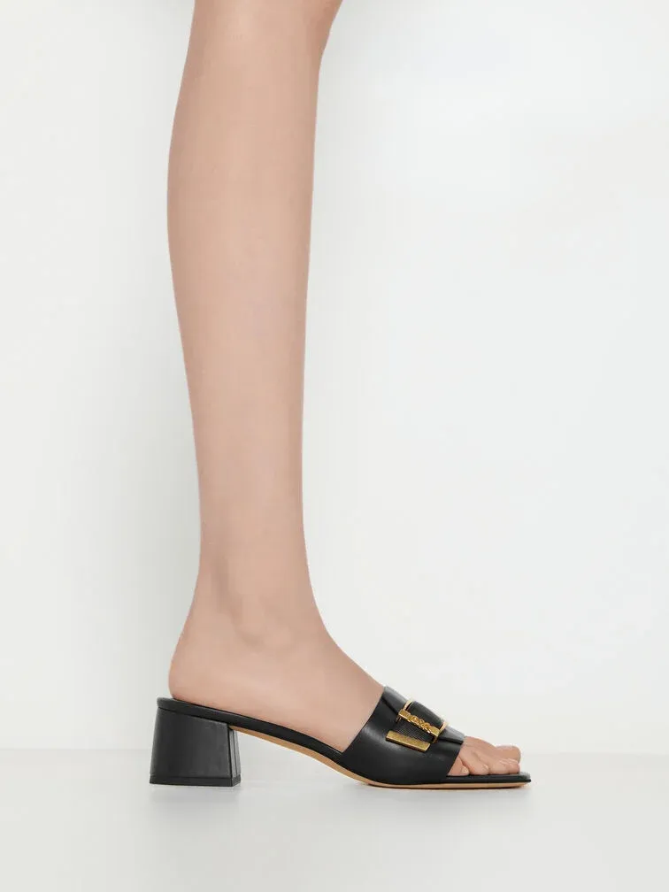 Whitney Leather Heeled Mules - black