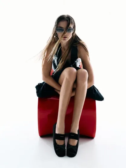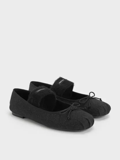 These Winona Mary Jane flats in black are made with felt and feature bow accents, furry straps, rounded toes and flat soles. Wear them with structured basics and socks to create an elevated cosy vibe.