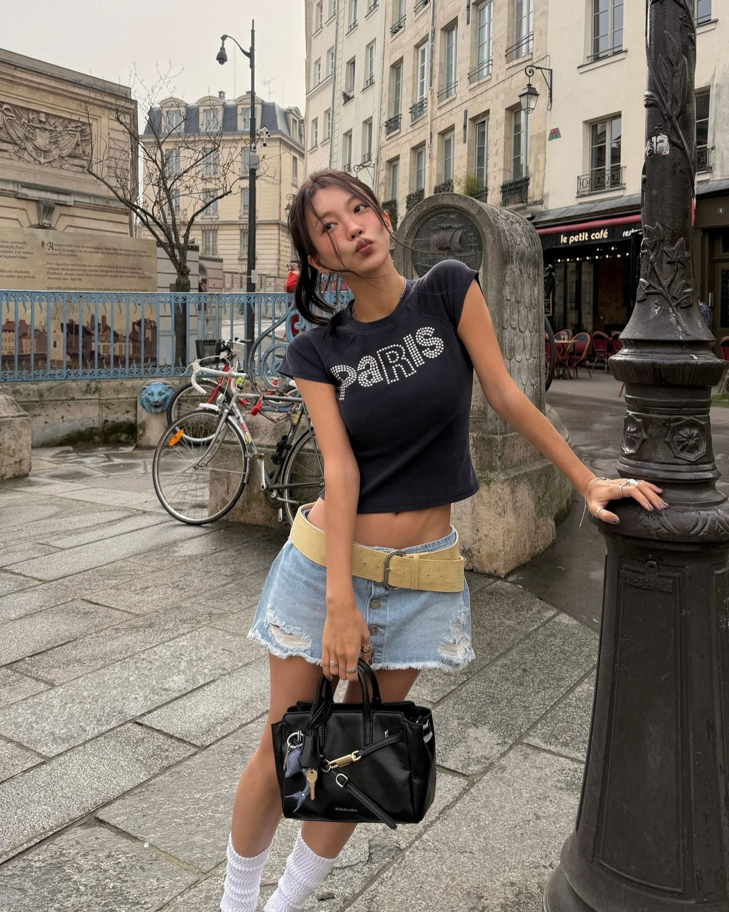 Mini Delfina Belted Tote Bag - distressed tan